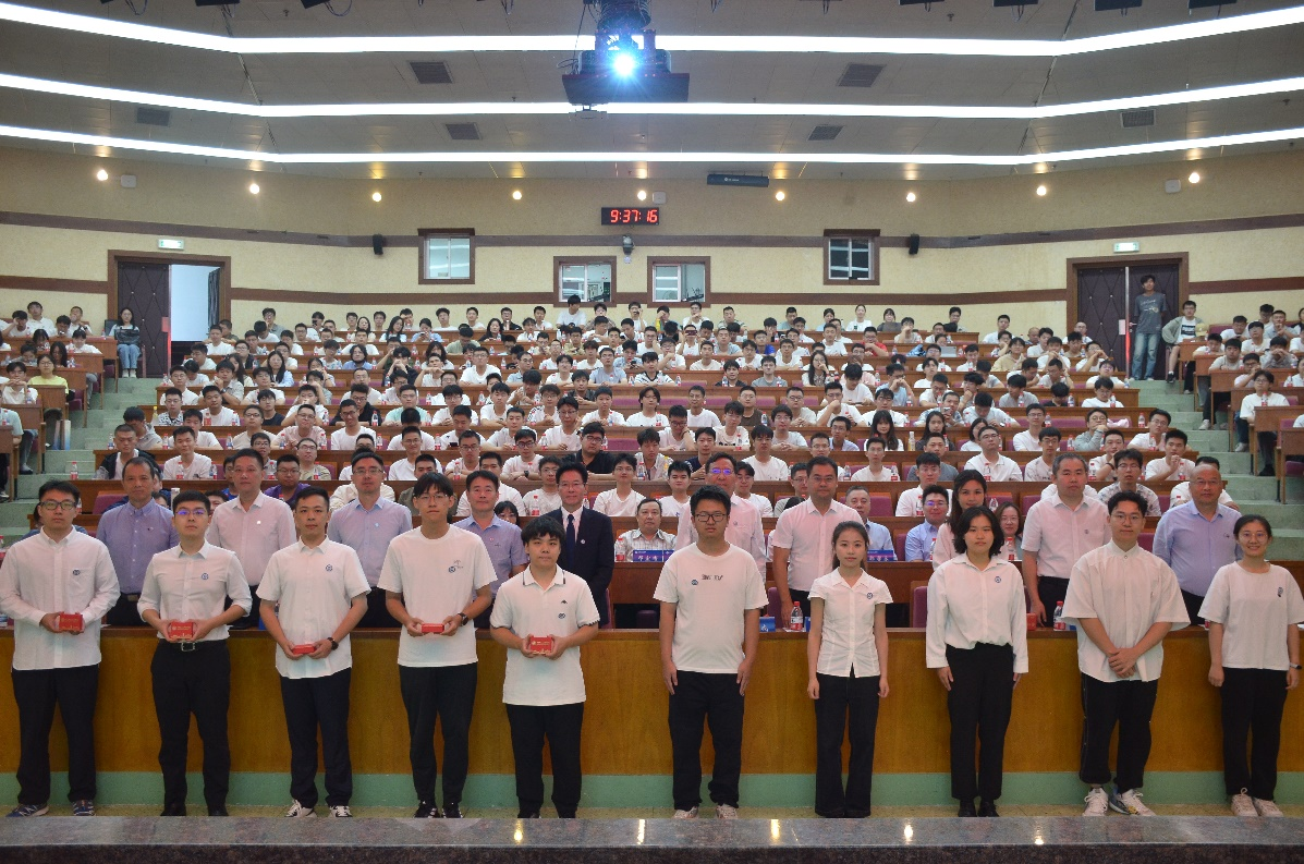 大会开始,机电学院全体领导班子成员及导师代表为2025级新生代表佩戴院徽。院徽不仅是身份象征,更是精神指引,传递一代代机电人接续奋斗的薪火。新生们将以今日为起点,踏着先辈足迹,砥砺品格,成长成才,为中国式现代化建设贡献青春力量。