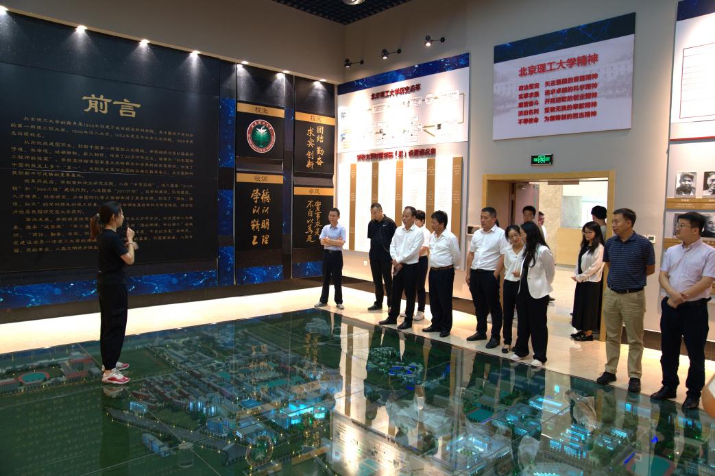 仪式结束后,辛仲平、毛勇一行与学校、学院领导在北理工中心花园合影留念,并参观了学校校史馆和机电学院兵器展厅。