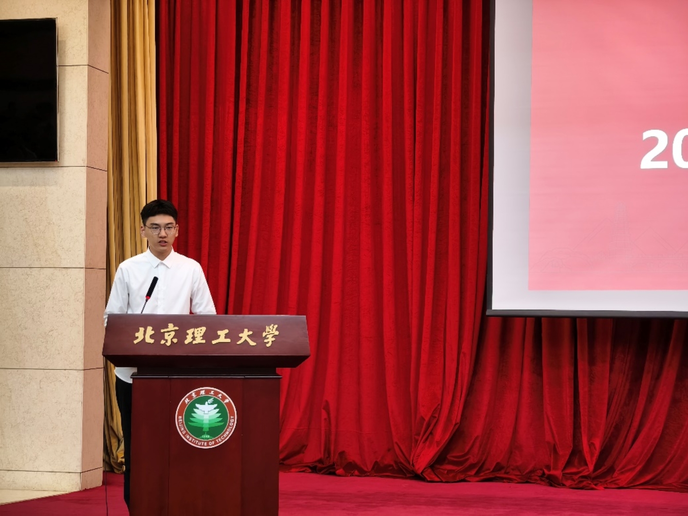 2021级博士胡倩然同学作为老生代表发言。胡倩然分享自己在博士求学生涯三年中的历程和感悟,强调北理工“实事求是,不自以为是”的扎实学风和机电学院“爱国、奉献、奋斗、创新”的兵器精神对科研的正面影响与引导。他激励新生们不忘初心、接续奋斗,做一名奋发有为、重责昭彰的科技青年。