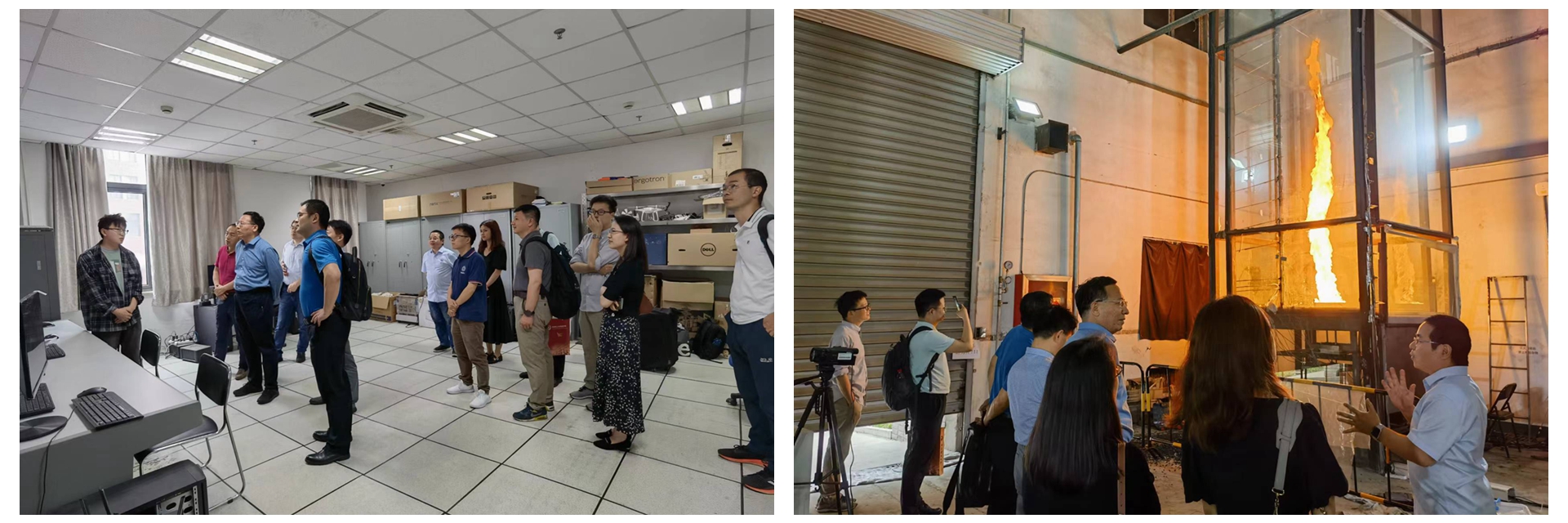 座谈会后,机电机电学院一行参观了火灾科学国家重点实验室。并围绕火灾科学、爆炸安全、星空平台等进行了深入交流。