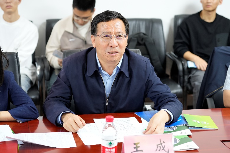 王成向特能集团介绍北理工机电学院基本情况,学院拥有以国家重点实验室为代表的国家级、省部级平台15个,近年来在机器人领域的研究和发展也不断迈向高精尖方向,展现出强劲的创新实力。他指出,学院始终紧扣国家建设和国防需求,在人才培养方面深入探索,为国家输送了一大批高素质的专业技术人才。北理工作为一所国防特色鲜明的学校,长期以来与集团在科研项目上开展广泛而深入的合作,机电学院的专业设置和人才培养与特能集团发展和人才需求匹配度高,希望未来双方能进一步深化产学研合作和交流,共同培育更多在国家重点行业领域发光发热的优秀人才。