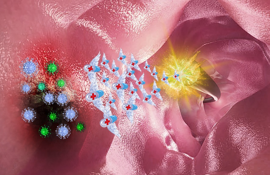 图1 基于微区精准爆炸冲击波输送靶向药物于体内病灶的示意图