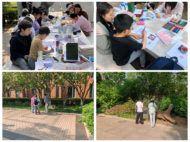 在活动伊始,志愿者用北林专属纪念贺卡写下了真挚的祝福作为见面礼送给孩子们,希望他们能在美丽的自然环境中打开心灵之窗,用心感受大自然的美好。随后在家长的陪伴下,带领孩子们游览北京林业大学校园,欣赏春景,科普植物,寻芳探奇,并指导他们用彩笔亲自画出最喜欢的一种花朵。志愿者鼓励孩子们在美好的阳光下进行现场表演,进一步打开自己的内心世界,向大家展示自我。