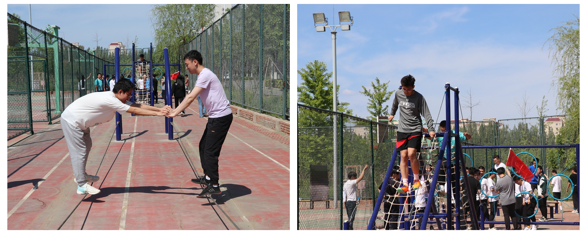 在素质拓展活动进行过程中,各个团队本着友谊第一比赛第二的原则,齐心协力完成了过独木桥、穿越“电网”、走钢丝、击鼓颠球、无间道等合作项目,团队成员相互配合、沟通和信任,提升了自身的团队协作能力。在总结阶段,素质指导教师公布了大家的成绩、给予了点评和建议,每个小队的代表都分享了自己的收获与感受。